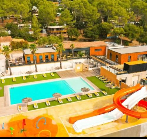 Mobil home Domaine des Voiles为客人提供水上公园和儿童游乐场。
