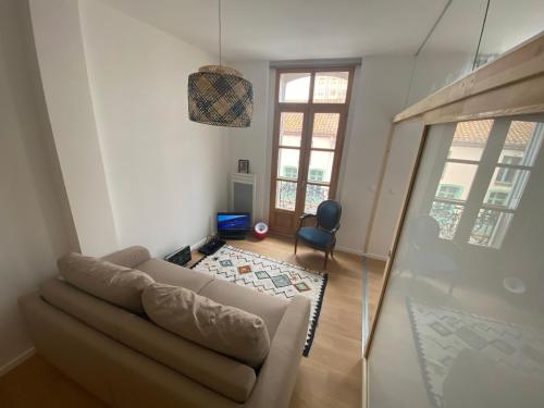 Situated in Perpignan and only 4 km from Stade Gilbert Brutus, Enormous charm T2 historic center laundry Fiber features accommodation with mountain views, free WiFi and free private parking. The air-conditioned accommodation is 30 km from Collioure Royal Castle. The property is non-smoking and is set 41 km from Queribus Castle.