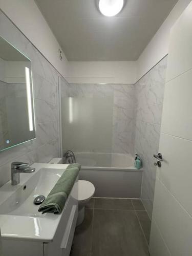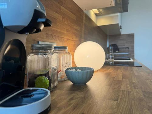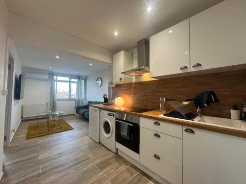 这家空调公寓配有1间独立卧室、带冰箱和烤箱的设施齐全的厨房以及1间浴室。这家公寓也配有1间浴室。
