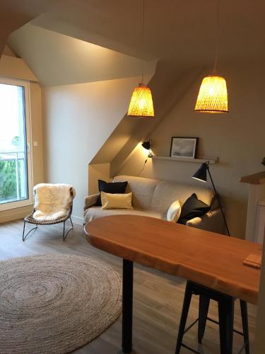 APPART-STUDIOS VUE MER PANORAMIQUE ST GUENOLE Côté Mer位于庞马尔,距离伯斯卡恩海滩(Pors Carn Beach)有1.7公里,距离坎佩尔火车站有34公里,提供免费WiFi,享有海景。