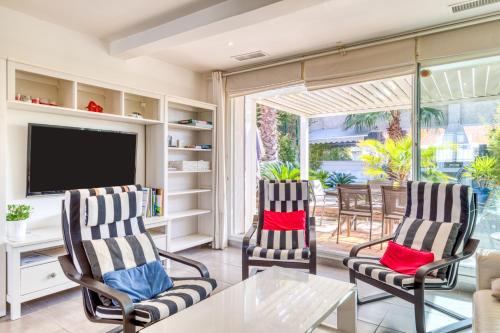 这家度假屋配有3间卧室、2间浴室、床上用品、毛巾、电视、设施齐全的厨房以及花园景露台。2间浴室配有淋浴设施和洗衣机,也拥有免费洗浴用品和吹风机。