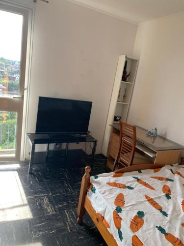 这家家庭式住宿配有带冰箱、微波炉和电热水壶的小厨房。这家家庭式住宿配备毛巾和床上用品。