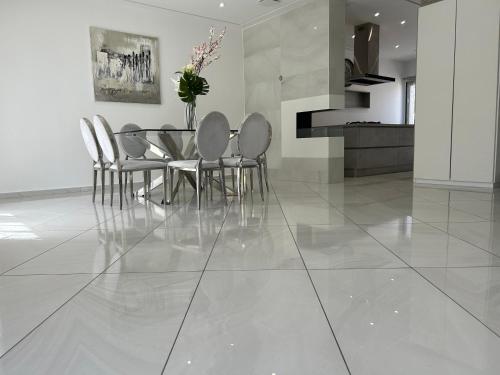 这家空调别墅配有3间卧室、起居室、带冰箱和咖啡机的设施齐全的厨房以及3间带淋浴设施和吹风机的浴室。这家别墅也配备休息区和3间浴室。
