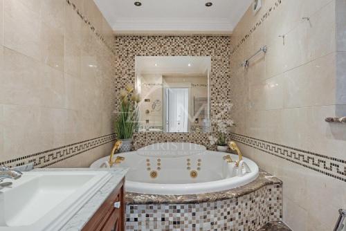 Luxury apartment with sea view on the first line Promenade des Anglais位于尼斯,距离圣海伦海滩(Plage Sporting)有几步路。客人可以使用热水浴池。这家住宿享有海景,配备阳台。