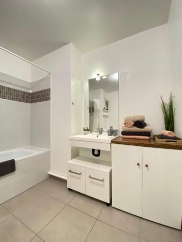 Grand Studio Montévrain - Disneyland RER A位于蒙泰夫兰,距离Val d'Europe RER Station仅有17分钟步行路程,享有花园景,提供免费WiFi和免费私人停车位。这家公寓距离巴士底歌剧院有37公里,距离巴黎圣母院有38公里。