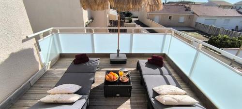 cocon-côtier de monta坐落于蒙塔利韦莱班,距离吉伦特河口有26公里,距离土地尽头圣母大教堂有18公里,提供阳台和免费WiFi。这家住宿距离北海滩(North Beach)有几步路,配备露台和免费私人停车位。