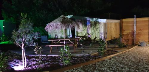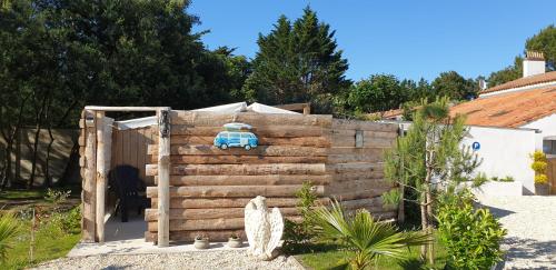 Logement en bois 4 pers proche du zoo de La Palmyre les chambres ont vue sur le ciel提供庭院和花园,距离帕尔米勒动物园有6.5公里。内部提供私人停车位。