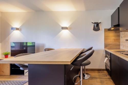 Residence Balcons Des Houches - Happy Rentals坐落于里雾诗,距离勃朗峰缆车仅有24公里,享有山景,配备免费WiFi和免费私人停车位。这家公寓提供带阳台的客房。