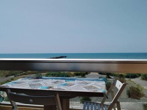 Appartement vue mer 4 personnes坐落于Les Bains,距离德莫塞勒斯海滩(Demoiselles Beach)有2分钟步行路程,距离高尔夫海滩(Golf Beach)有200米,配备阳台和免费WiFi。这家公寓距离圣让德蒙特斯娱乐城有12分钟步行路程,距离波尼克火车站有48公里。