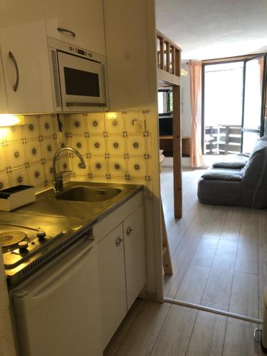 Belle Vue Au Pied Des Pistes Les Orres 1650享有山景,提供滑雪至门口雪道和阳台,距离Les Orres 1650约有3分钟步行路程。