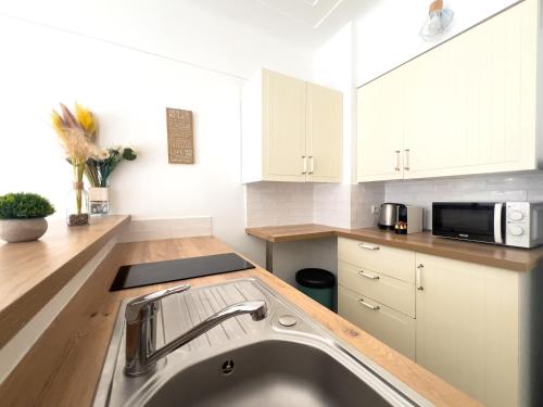 这家空调公寓配有1间卧室、起居室、带冰箱和咖啡机的设施齐全的厨房以及1间带淋浴设施和免费洗浴用品的浴室。这家公寓还配备休息区、洗衣机以及1间带吹风机的浴室。