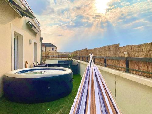 Le Prestige Terrasse-Cocon familial cosy, Billard & Jacuzzi avec vue sur Paris位于勒布朗-梅尼尔,距离法兰西体育场有9.3公里。客人可以使用热水浴池。这家住宿的客人可以使用桌球台、免费私人停车位和免费WiFi。