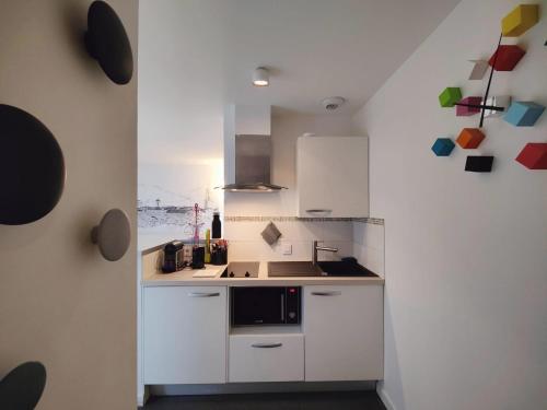 这家公寓配有平板电视、带冰箱和微波炉的设施齐全的厨房以及带淋浴设施和吹风机的浴室。这家公寓提供毛巾和床上用品。