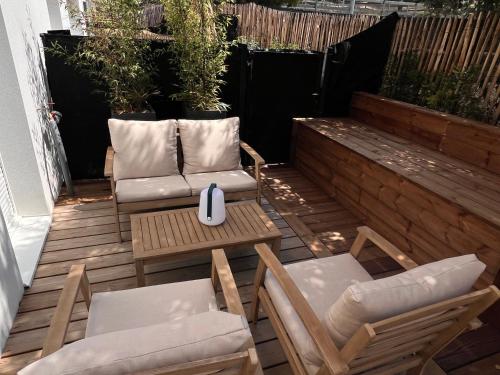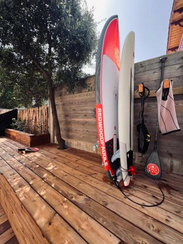 Maison à Lacanau Océan坐落于拉卡诺奥肯,距离南海滩(Plage Sud)有不到一公里,距离中央海滩(Plage Centrale)有10分钟步行路程,距离梅嘉内高尔夫球场有4.4公里。这家住宿距离超级南海滩(Plage Super Sud)有5分钟步行路程,配备露台和免费私人停车位。