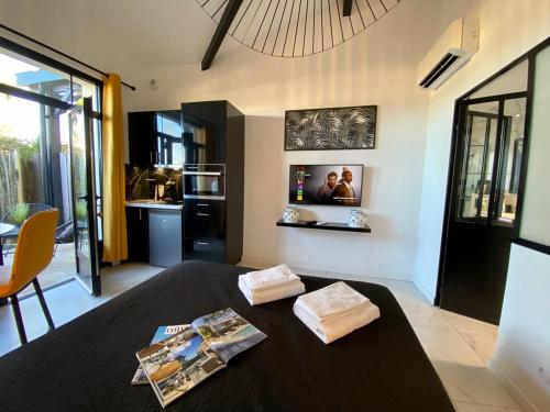 这家旅馆的房间均配备咖啡机。Hôtel particulier - Les lodges du Bassin d'Arcachon- Petit-déjeuner sur demande- Prestations haut de gamme的所有房间均提供平板电视、空调以及配有淋浴设施和免费洗浴用品的私人浴室。部分客房拥有露台。这家住宿的所有客房都配备床上用品和毛巾。