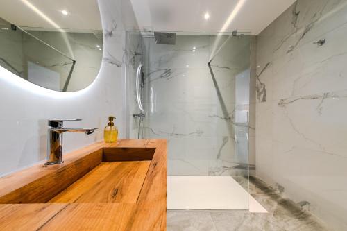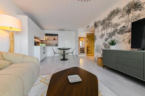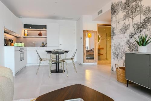 这家空调公寓配有1间卧室、起居室、带冰箱和咖啡机的设施齐全的厨房以及1间带淋浴设施和吹风机的浴室。这家公寓也配备休息区和1间浴室。
