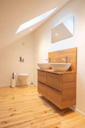 这家空调小木屋配有4间卧室、起居室、带冰箱和咖啡机的设施齐全的厨房以及2间带淋浴设施和吹风机的浴室。这家小木屋也提供休息区和2间浴室。