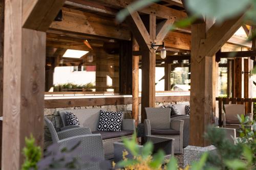 每间客房均拥有迷人的小木屋风格装饰,墙壁上配有木板和外露横梁,配有带家具的阳台、平面电视和私人浴室。