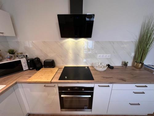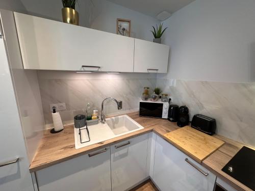 这家公寓配有2间卧室、起居室、带冰箱和咖啡机的设施齐全的厨房以及1间带淋浴设施和吹风机的浴室。这家公寓也配有1间浴室。
