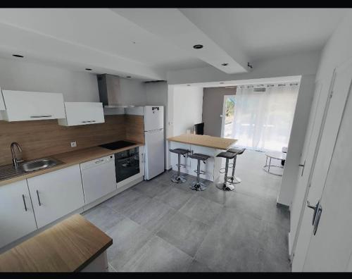 Villa en bord de mer à Saint Pierre la mer位于弗勒里,提供花园,享有花园景,距离纳博讷海滩(Narbonne Beach)有4分钟步行路程,距离圣皮埃尔德拉梅尔海滩(Saint-Pierre de la Mer Beach)有400米。这家海滨住宿的客人可以使用阳台、免费私人停车位和免费WiFi。