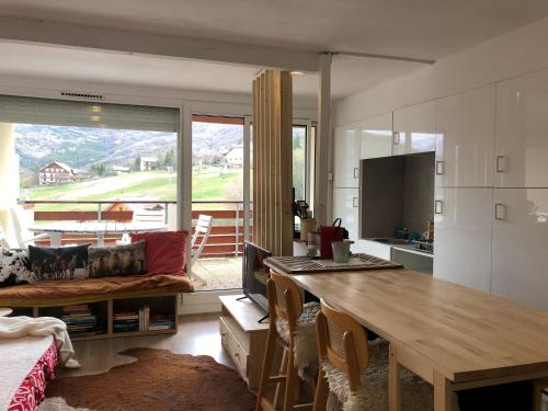 Les alpages - lit queen size - centre station位于普罗旺斯-阿尔卑斯-蓝色海岸的Enchastrayes,拥有阳台,享有池景。这家公寓提供免费私人停车位、礼宾服务和免费WiFi。