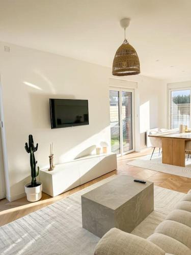 这家度假屋配有2间卧室、1间浴室、床上用品、毛巾、平板电视、用餐区、设施齐全的厨房以及花园景露台。1间浴室提供淋浴设施和吹风机。