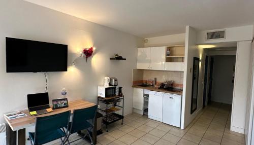 Studio face mer, Piscine, Parking 4 étoile享有市景,配备户外游泳池和露台,距离港口海灘(Beach du Port)约有几步路。这家自助式公寓拥有私人泳池、花园和免费私人停车位。