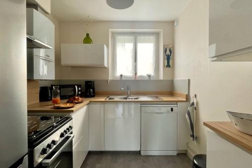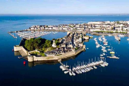 « BLEU COMME MER » T2 à deux pas des plages位于孔卡尔诺,距离康诺里勒海滩(Plage Cornouaille)仅有5分钟步行路程,配备海滨住宿和免费WiFi。这家住宿距离罗德尔海滩(Plage Rodel)有4分钟步行路程,提供花园和免费私人停车位。