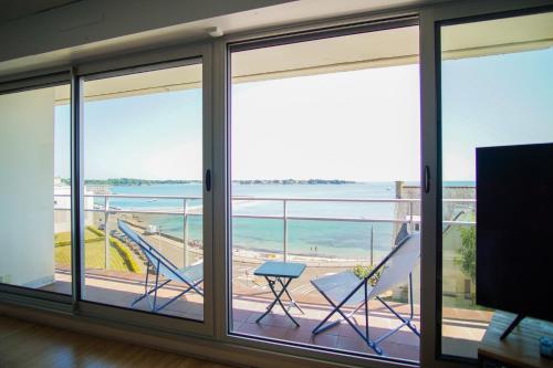 -Mave Mai- Magnifique T3 surplombant la mer位于孔卡尔诺,享有海景,距离罗德尔海滩(Plage Rodel)有几步路,距离康诺里勒海滩(Plage Cornouaille)有6分钟步行路程。这家海滨住宿的客人可以使用露台、免费私人停车位和免费WiFi。