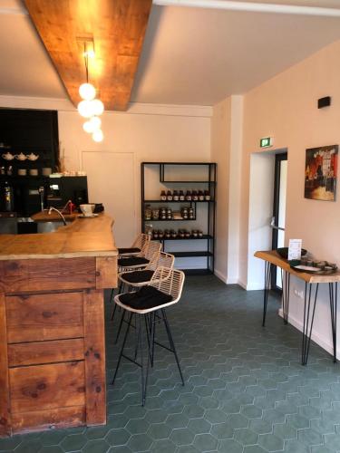 厨房配备冰箱、微波炉、炉灶和咖啡机。