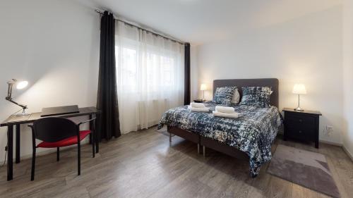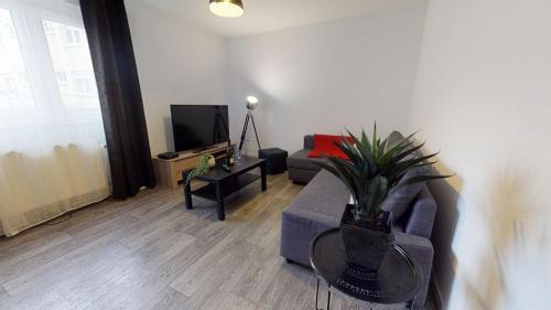 这家公寓配有1间卧室、起居室、带冰箱和咖啡机的设施齐全的厨房以及1间带淋浴设施和吹风机的浴室。这家公寓也配备休息区和1间浴室。