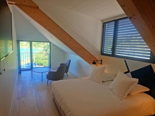 Beau Rivage酒店位于Lac de Paladru湖畔的沙拉维内(Charavines)乡村,设有全景餐厅、私人湖滩区与公共区免费无线网络连接。