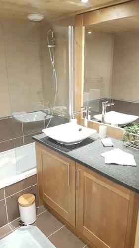 这家公寓享有山景,配备露台,配有2间卧室、起居室、有线频道平板电视、设施齐全的厨房以及2间带淋浴设施和浴缸的浴室。这家公寓还配备休息区、洗衣机以及2间带吹风机的浴室。