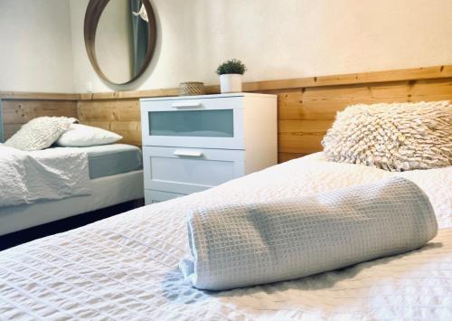 这家小木屋享有山景,提供露台,配有5间卧室、起居室、卫星频道平板电视、设施齐全的厨房以及3间带淋浴设施和热水浴池的浴室。这家小木屋还配备休息区、洗衣机以及3间带浴缸的浴室。