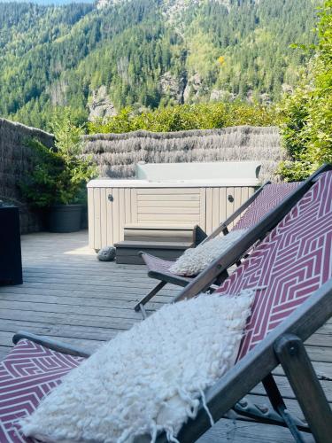 Chalet le petit Nicolas, jacuzzi, vue Mont Blanc