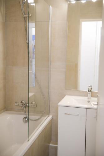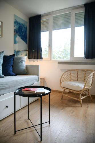 这家公寓配有1间卧室、起居室、带冰箱和咖啡机的设施齐全的厨房以及1间带淋浴设施和浴缸的浴室。这家公寓也为客人提供休息区和1间浴室。