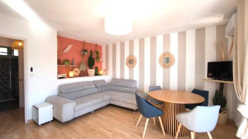 这家空调公寓配有1间独立卧室、起居室、带冰箱和洗碗机的设施齐全的厨房以及1间浴室。这家公寓还配备平板电视以及1间带吹风机的浴室。