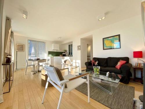 Appartement proche plage avec vue mer提供免费WiFi和露台,距离格兰德海滩(Grande Beach)有不到2分钟步行路程,距离博默海滩(Beaumer Beach)有不到1.1公里。入住这家公寓的客人可以使用阳台。