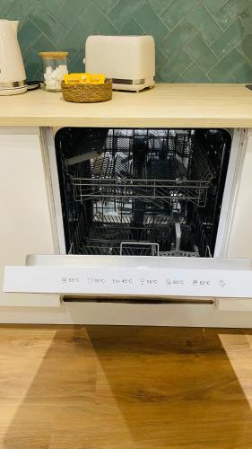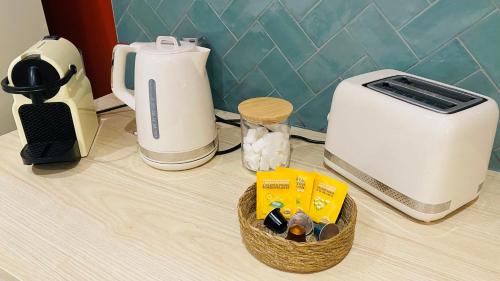 这家空调公寓配有1间卧室、起居室、带冰箱和咖啡机的设施齐全的厨房以及1间带淋浴设施和吹风机的浴室。这家公寓也拥有休息区和1间浴室。