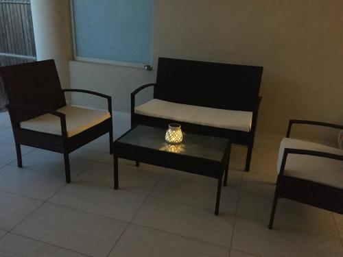 这家空调公寓配有1间卧室、起居室、带冰箱和咖啡机的设施齐全的厨房以及1间带淋浴设施和吹风机的浴室。这家公寓也配备休息区和1间浴室。