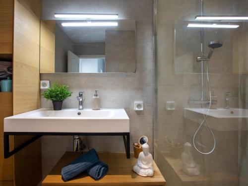 这家公寓提供露台,享有池景,拥有1间卧室、起居室、平板电视、带冰箱和洗碗机的设施齐全的厨房以及1间带淋浴设施的浴室。1间浴室提供吹风机。