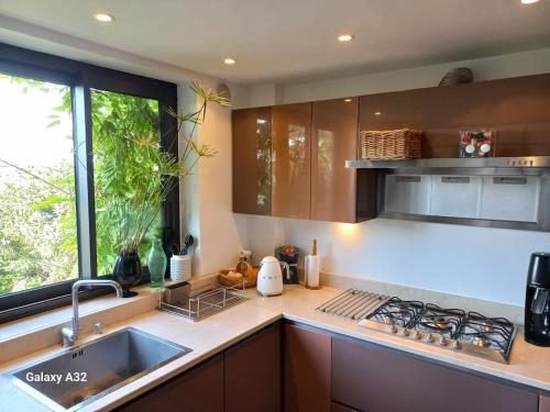 这家别墅配有4间卧室、2间浴室、床上用品、毛巾、平板电视、设施齐全的厨房以及花园景露台。这家别墅也为客人提供2间浴室。