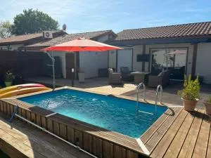 Vill'Armonie位于比斯卡罗斯,配备带免费WiFi的池景客房,配备露台。这家自助式度假屋配有私人泳池、花园和免费私人停车位。 这家度假屋配备2间卧室、带冰箱和洗碗机的厨房以及1间带淋浴设施、吹风机和洗衣机的浴室。这家度假屋还提供平板电视、休息区以及1间带热水浴池的浴室。 这家度假屋的客人可以使用热水浴池。 Vill'Armonie距离瓢虫公园有31公里,距离儿童乐园有31公里。波尔多-梅里尼亚克机场距离住宿有69公里。 更多