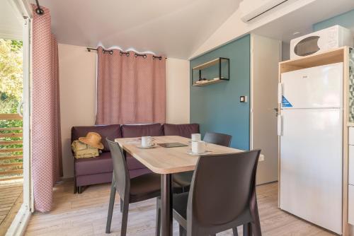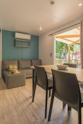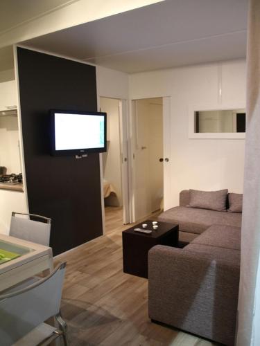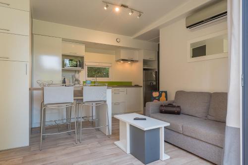 Guests can choose from cottages, mobile homes and chalets. Situated in large plots, all are equipped with private bathrooms and the mobile homes and cottages also have a terrace, a small garden area and an equipped kitchen.