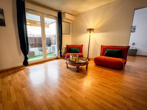 这家空调公寓配有1间卧室、起居室、带冰箱和咖啡机的设施齐全的厨房以及1间带淋浴设施和吹风机的浴室。这家公寓也配备休息区和1间浴室。