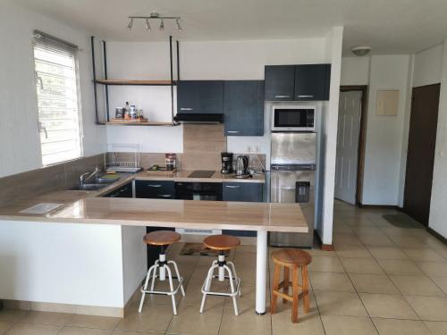 这家空调公寓配有1间卧室、起居室、带冰箱和电热水壶的设施齐全的厨房以及1间带淋浴设施和免费洗浴用品的浴室。这家公寓也提供休息区和1间浴室。