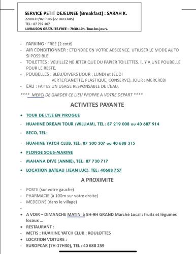 住宿距离胡阿希内岛机场有2公里,提供付费机场接驳服务。