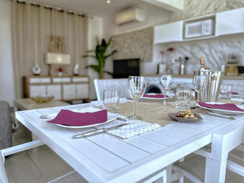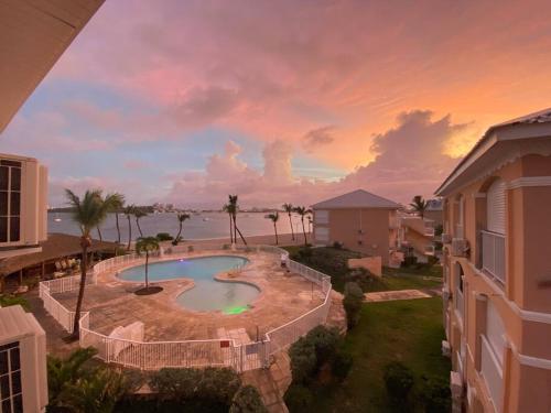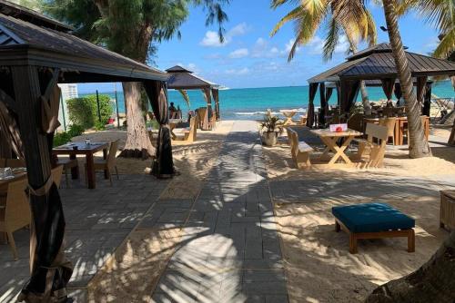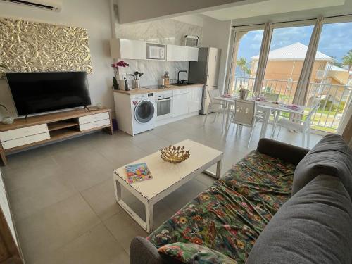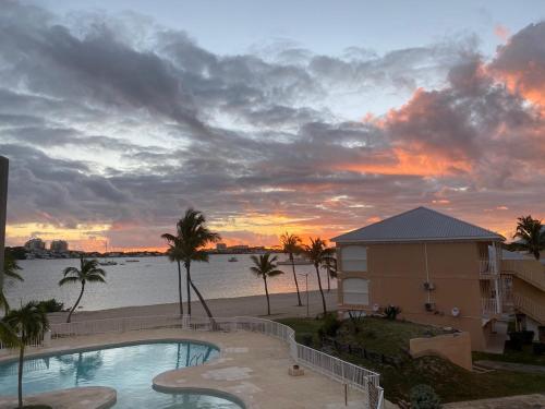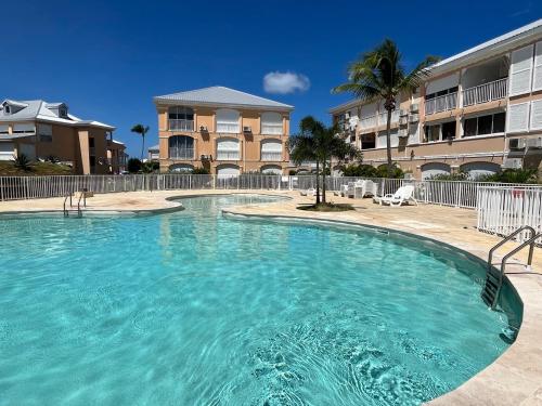 Studio pieds dans l’eau avec vue lagon et piscine位于圣马丁岛,提供带免费WiFi的池景客房,配备户外游泳池、花园和餐厅。这家公寓配有免费私人停车位。客人可以在周边地区体验垂钓和浮潜等活动。