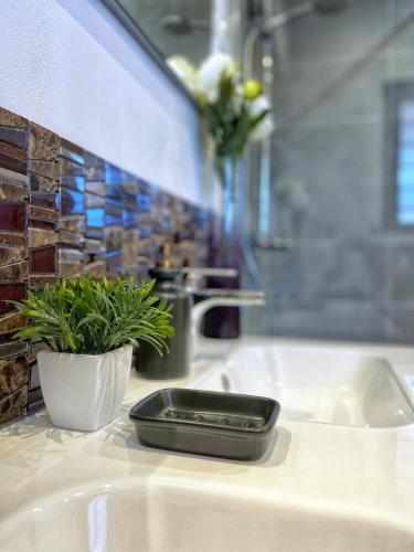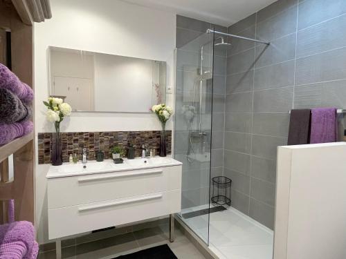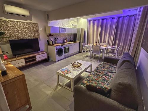 这家空调公寓配有1间卧室、起居室、带冰箱和咖啡机的设施齐全的厨房以及1间带淋浴设施和吹风机的浴室。这家公寓也提供休息区和1间浴室。