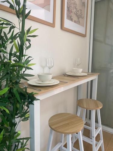 这家空调公寓配有1间卧室、起居室、带冰箱和电热水壶的设施齐全的厨房以及1间带坐浴盆和淋浴设施的浴室。1间浴室提供免费洗浴用品。